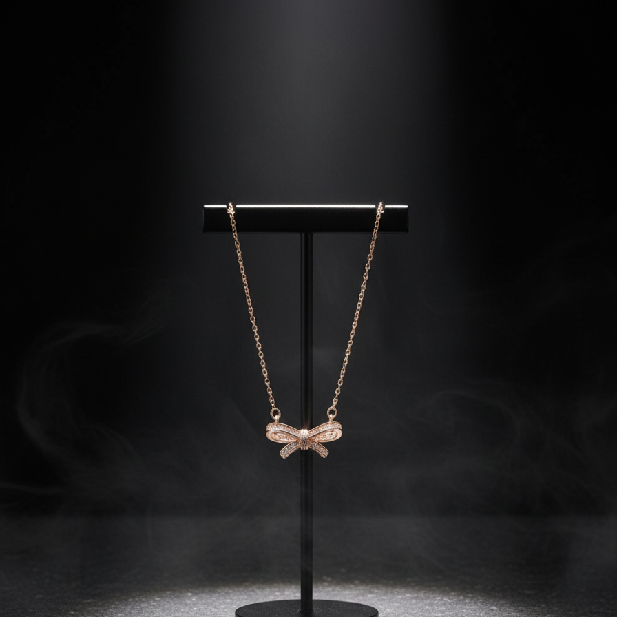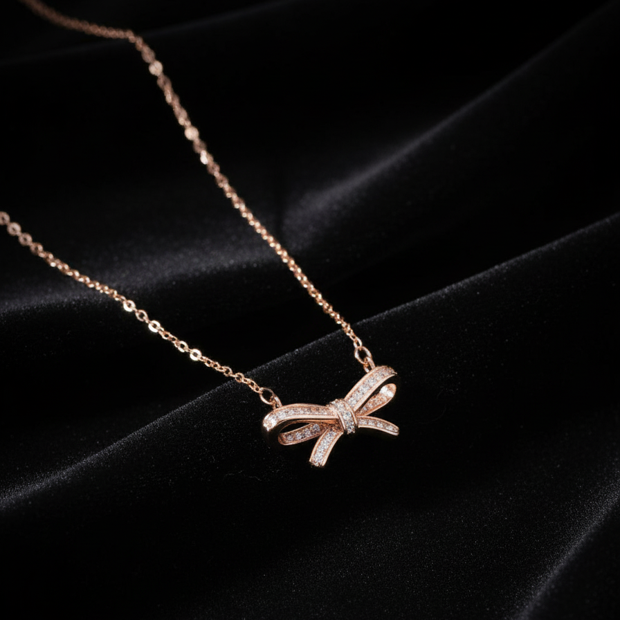 Rose Gold Plated Bow Pendant Necklace – Minimalist Diamond Look