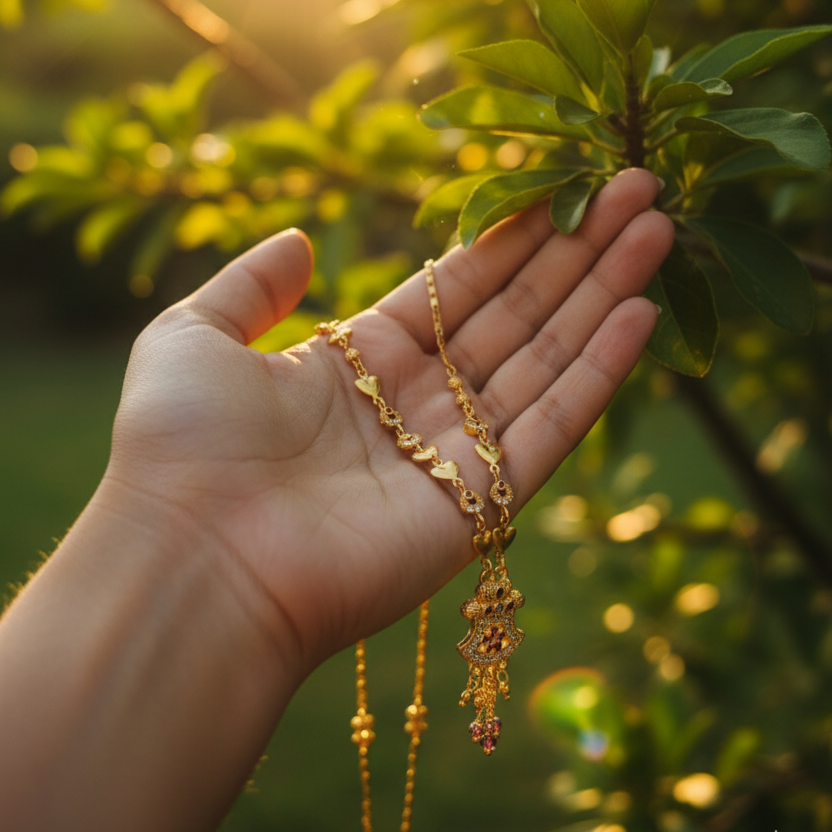 Crafted with premium imitation jewelry and gold plating, the mangalsutra is lightweight, comfortable, and durable for everyday use. Monixa Jewels ensures high-quality craftsmanship, delivering affordable luxury while preserving the beauty of traditional Indian jewelry.